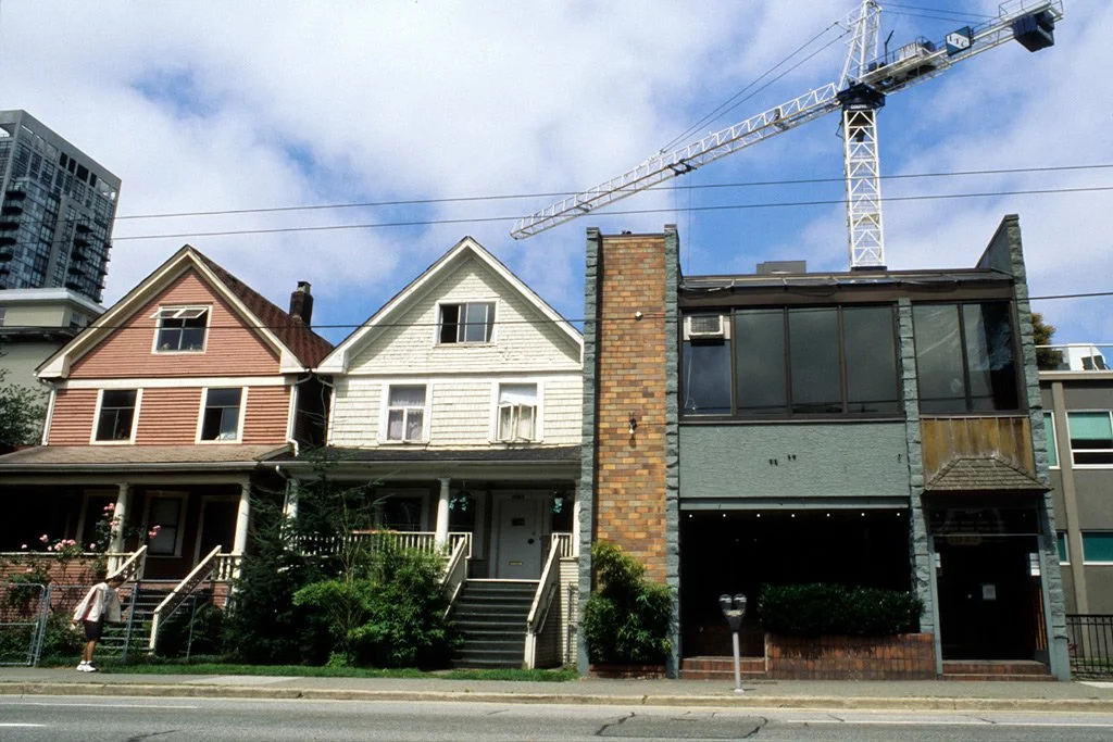 Unchecked development overlooks long-term social and economic impacts. Development pressures in Vancouver are erasing old structures, the physical evidence of the past, replacing them with questionable construction choices and driving current residents out of their neighbourhoods. The result is a city that is becoming accessible only for the rich and an architecture that is often criticized as second or third rate.